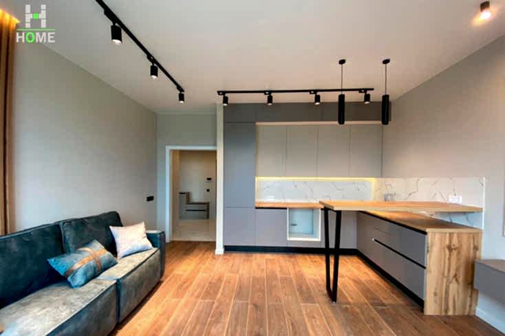2. Вы обустраиваете кухонный уголок в квартире-студии либо в общем пространстве, где кухня совмещена с гостиной и столовой.