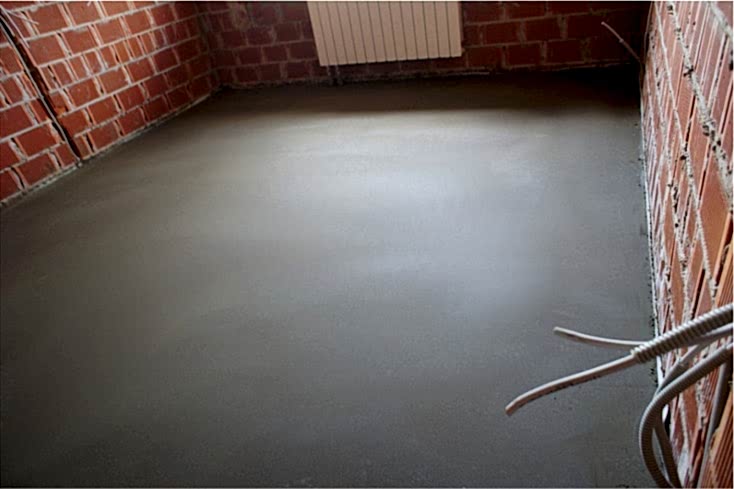 Положительные стороны такого подхода: прочность (такая стяжка не деформируется под давлением тяжелой мебели), все щели и трещины естественным образом заделываются, хорошая шумоизоляция, возможно спрятать коммуникации внутри стяжки.